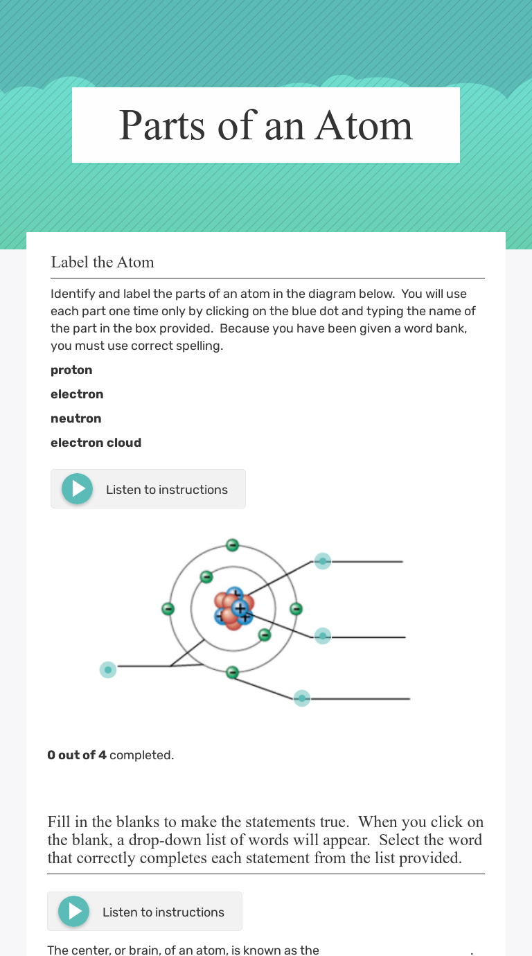 Label Parts Of An Atom Worksheets - Learny Kids Label Parts Of An Atom Worksheets - Learny Kids Label Parts Of An Atom Displaying top 8 worksheets found for - Label Parts Of An Atom. Some of the worksheets for this concept are An atom apart, Atoms family work, Atomic structure work, Parts of the atom work, Teacher workbooks, Chemistry of matter, Parts of the atom work, Parts of the atom work.