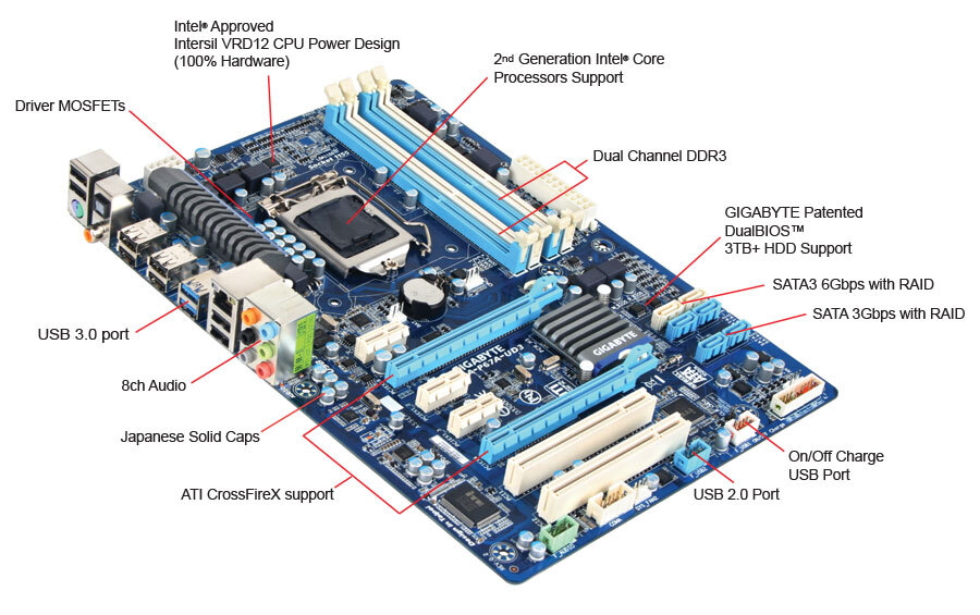 Parts of Motherboard | Figure out the Anatomy of Motherboard Intel 386, Intel Core 2Duo, iCore7, etc. are the examples of the CPU chip. The sockets are marked by Socket 1-8 or LGA 775. You can find out the processor chip adaptable with the CPU socket given the motherboard. Memory Slots Generally, computers consist of 2-4 memory slots.
