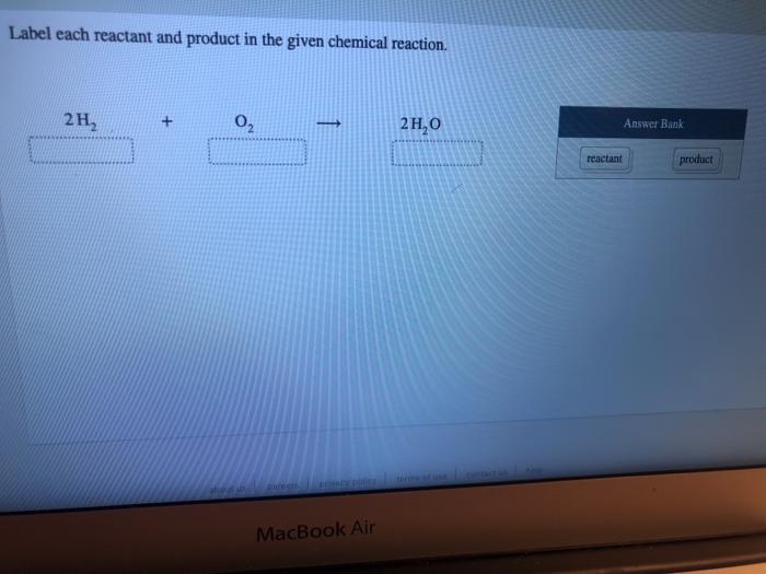 41 label each reactant and product in the given chemical reaction