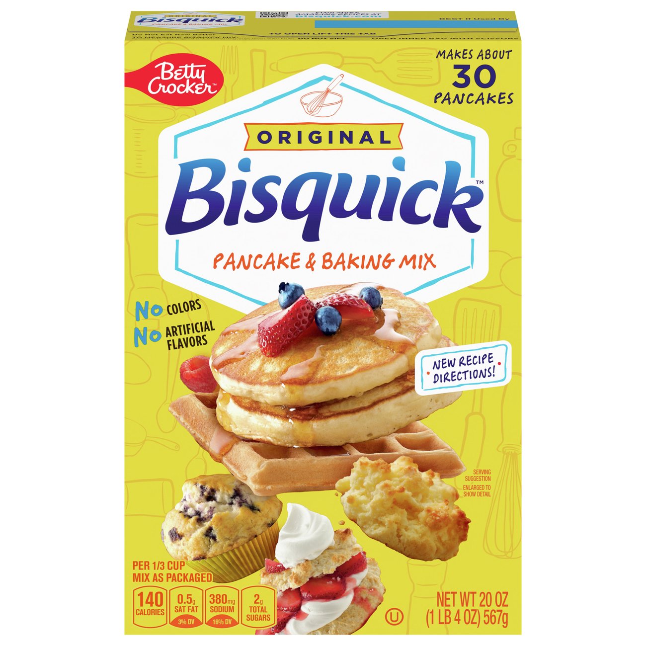 Bisquick - Brands - Food we make - General Mills Fun facts about Bisquick 25 1/2 feet The diameter of the World's Largest Peach Shortcake made in 1981, containing more than four tons of Bisquick and nine tons of peaches. 1930 The year that started it all. 50+ Years that Bisquick has gained a legacy with its yellow and blue box, used to make all kinds of delicious meals and snacks. History Bisquick Ingredients Label / What S Actually In Bisquick Myrecipes Nutrition label · nutrition facts · serving size 0.33 cup · amount per serving · calories 160calories from fat 50 · % daily value* · total fat 6g · saturated fat 1.5g. The ingredients in bisquick original consist of bleached wheat flour (enriched with niacin, iron, thiamine mononitrate, riboflavin and folic acid), . General Mills Bisquick™ Baking Mix All-Purpose 5 lb * Nutritional information is subject to change. See product label to verify ingredients and allergens. ... General Mills Bisquick™ Baking Mix All-Purpose 5 lb The original, all purpose baking mix from General Mills that's consistent, tolerant, and easy-to-use in a cost-effective, 5 lb bulk format for smaller operations. ... Bisquick Sausage Balls Recipe - The Spruce Eats Show Full Nutrition Label (Nutrition information is calculated using an ingredient database and should be considered an estimate.) Save Recipe Bisquick sausage balls are an easy, hearty appetizer loaded with herbs, and cream cheese. It's the ideal, no-plate-needed appetizer for any of your holiday celebrations or Super Bowl parties.
