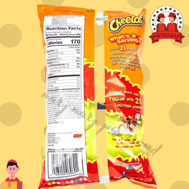 Hot cheeto puffs nutrition label. Cheetos Flamin' Hot Puffs Cheese Flavored Snacks, Party Size, 13.5 oz ... Cheetos Flamin' Hot Puffs Cheese Flavored Snacks, Party Size, 13.5 oz Bag. USD $3.98 29.5 ¢/oz. ... Nutrition facts. Refer to the product label for full dietary information, which may be available as an alternative product image. 14 Servings Per Container. Serving Size 28. Amount per serving. Hot Cheetos Dietary Details - Proper Nutrition | NutritionOfPower.com (HOT FOOD) In honor of 1,000 subscribers, this is my attempt at eating 1,000 flamin' hot cheetos. This food challenge is over 7,000 calories. No takis, just a ridiculous amount of hot cheetos. A SPICY food challenge for your viewing pleasure. The 1,000 Flamin' Hot Cheetos Challenge.. My Website! . Calories in Cheetos Puffcorn and Nutrition Facts - FatSecret There are 160 calories in 42 pieces (28 g) of Cheetos Puffcorn.: Calorie breakdown: 62% fat, 33% carbs, 5% protein. CHEETOS® Crunchy XXTRA FLAMIN' HOT® Cheese Flavored Snacks | Cheetos Take it to the next level with CHEETOS ® Crunchy XXTRA FLAMIN' HOT ® Cheese Flavored Snacks. Nutrition Facts Ingredients Buy Now Buy Now CHEETOS® Crunchy XXTRA FLAMIN' HOT® Cheese Flavored Snacks (opens a popup) Product Reviews ★★★★★ ★★★★★ 5.0 16 Reviews 16 out of 16 (100%) reviewers recommend this product ϙ Rating Snapshot