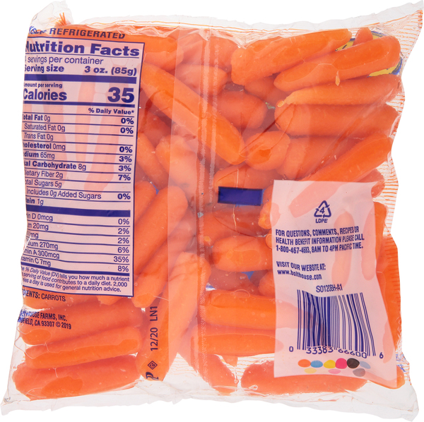 Baby carrots nutrition label. Calories in Baby Carrots - Nutritionix Baby Carrots ; Sodium 78mg milligrams. 3% Daily Value ; Potassium 237mg milligrams. 7% Daily Value ; Total Carbohydrates 8.2g grams. 3% Daily Value ; Protein 0.6g ... Carrots, baby, raw Nutrition Facts & Calories ESTIMATED GLYCEMIC LOAD ; Vitamin B12. 0.0. mcg. 0% ; Pantothenic Acid. 0.1. mg. 1% ; Choline. 1.1. mg ; Betaine. 0.0. mg ; Minerals. Amounts Per Selected Serving. % ... BABY-G | Montres | Produits | CASIO La montre BABY-G est faite pour les jeunes femmes modernes et fières, qui aiment le mouvement et les activités sportives et qui adorent les styles jeunes et frais. Le boîtier ressemble par sa construction à celui des G-SHOCK. Seuls des matériaux de haute qualité, comme l’acier inoxydable ou la résine synthétique, sont là aussi utilisés pour leur fabrication, ce qui garantit … Health Benefits of Baby Carrots - WebMD Nutrients Per Serving · Calories: 40 · Protein: 1 gram · Fat: Less than 1 gram · Carbohydrates: 9 grams · Fiber: 2 grams · Sugar: 5 grams · Sodium: 45 milligrams.