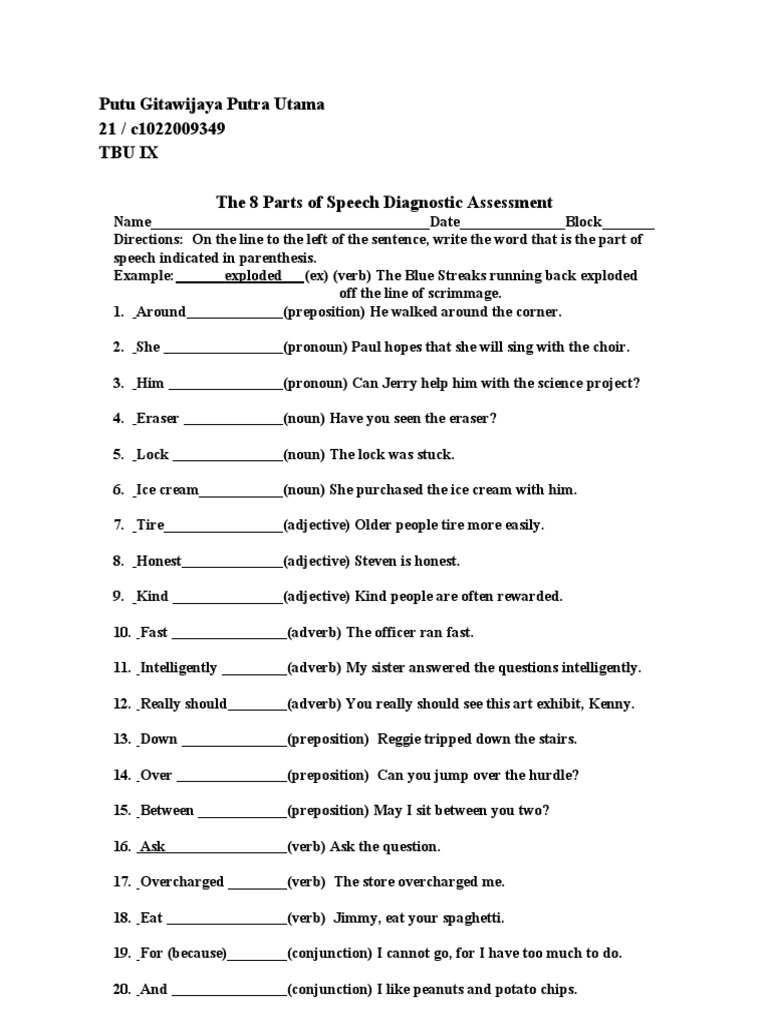42 the 8 parts of speech diagnostic assessment